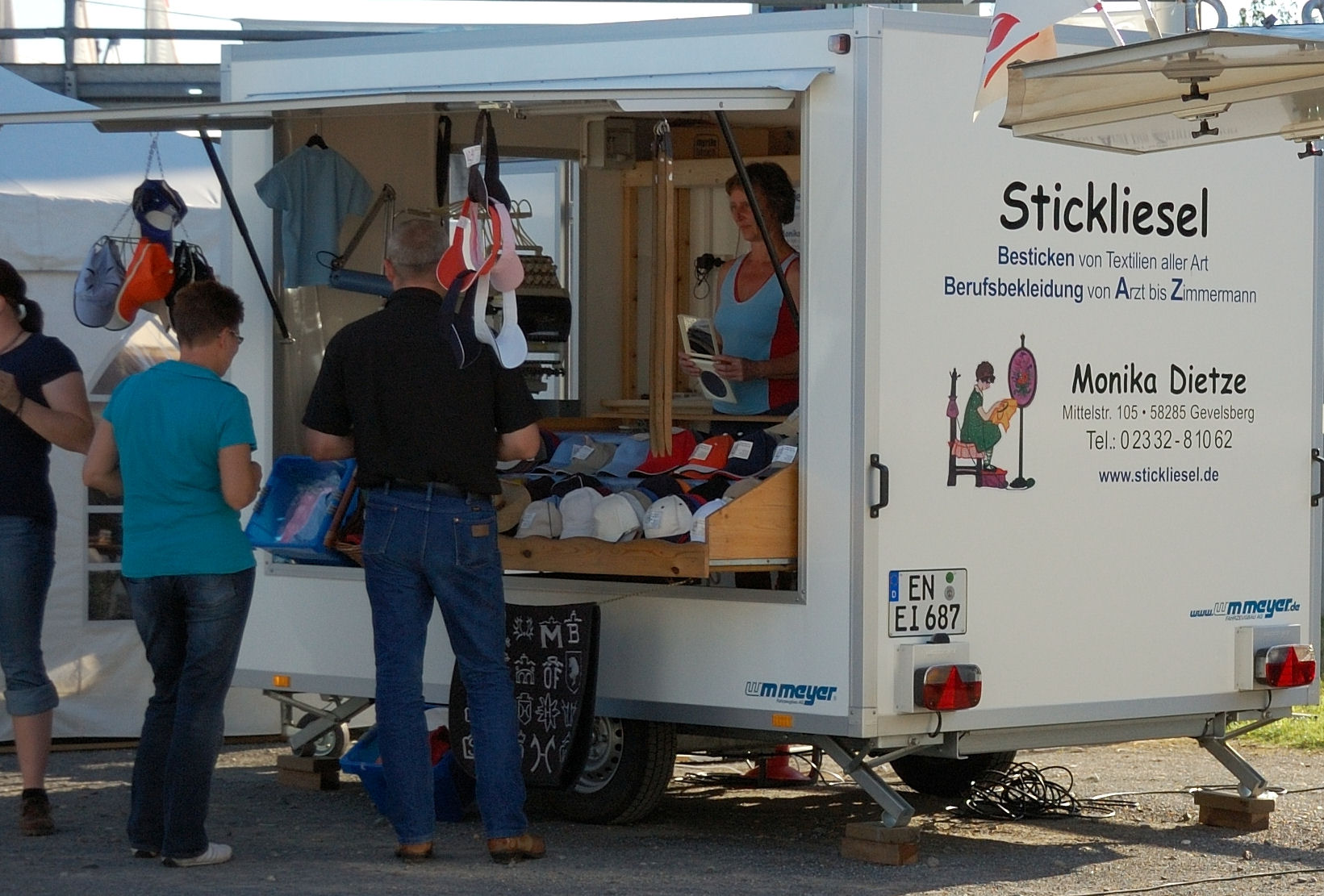 Sie haben ein Jubiläum, eine Sonderaktion oder sonst einen Grund zum Feiern und suchen noch eine Attraktion? Die mobile Stickerei kommt, nach vorheriger Terminabsprache, auch in Ihr Geschäft oder auf Ihr Freigelände!